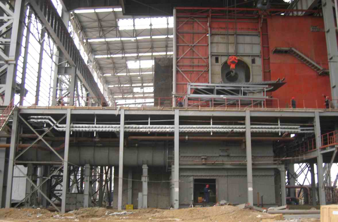 The evaporation-cooled waste heat boiler produced by yingkou lvyuan boiler is used to cool the high temperature (1000 ℃ ~ 1400 ℃) generated in the process of electric furnace smelting through the water-wall pipe of the evaporation-cooled flue pipe. On the one hand, the temperature of high-temperature flue gas can be reduced to facilitate dust removal.On the other hand, a large amount of steam is generated to achieve the purpose of waste heat recovery.The vaporization cooling equipment consists of a drum, a deaerator, a feed pump, a circulating pump, a combustion chamber, and a vaporization flue.The high temperature flue gas containing dust (about 1050℃) passes through the combustion chamber slowly. At this point, the coarse particle dust settles in the combustion chamber under the action of gravity. Then the flue gas of the electric furnace enters the vaporization flue and is further cooled to about 600℃.Finally, the flue gas enters the ventilation and dust removal pipeline.